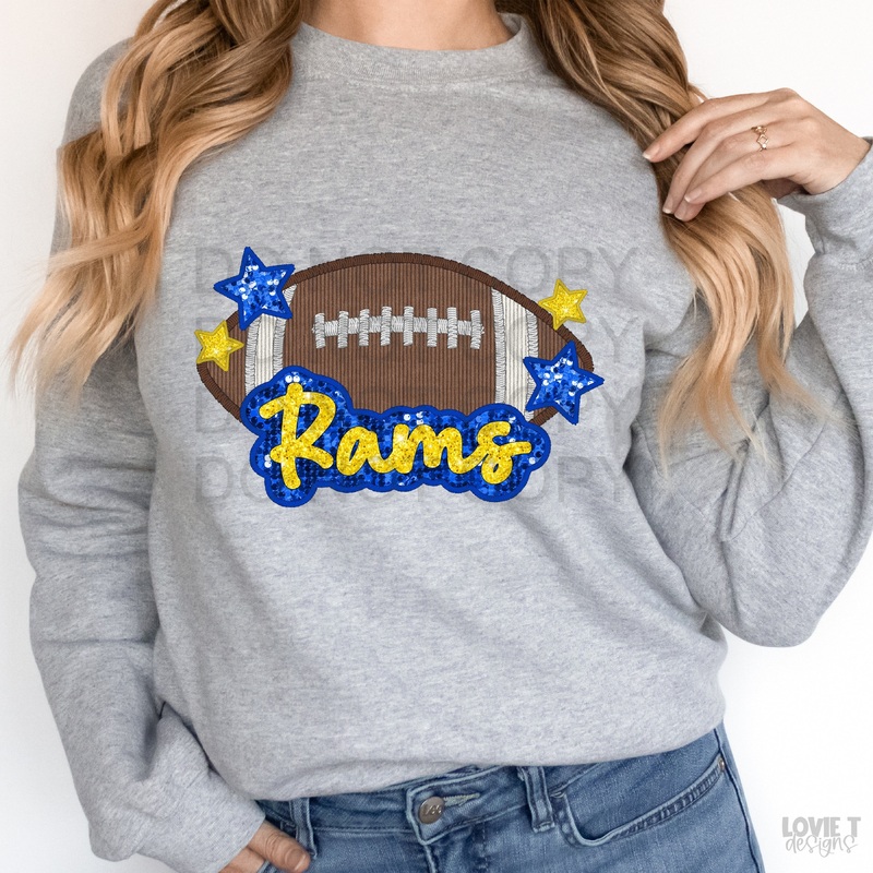 Rams Applique Faux Sequin|Pocket 3.5″-4″|Infant|Toddler|Youth 8.5|Adult 11″|Adult 12″