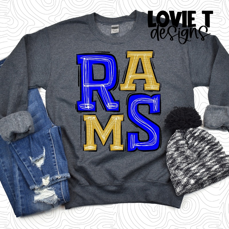 Rams Blue And Gold|Pocket|Infant|Toddler|Youth|Adult 11″|Adult 12″|Oversized Print 12″ Wide and Approximately 14″ Long – Also Includes Two Smaller Prints 5″ 6″ inches wide & 7″ Tall|Mockup