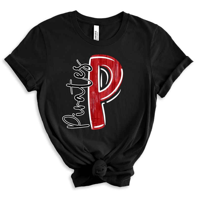 Red And White P Pirates|Pocket 3.5″-4″|Infant|Toddler|Youth 8.5|Adult 11″|Adult 12″