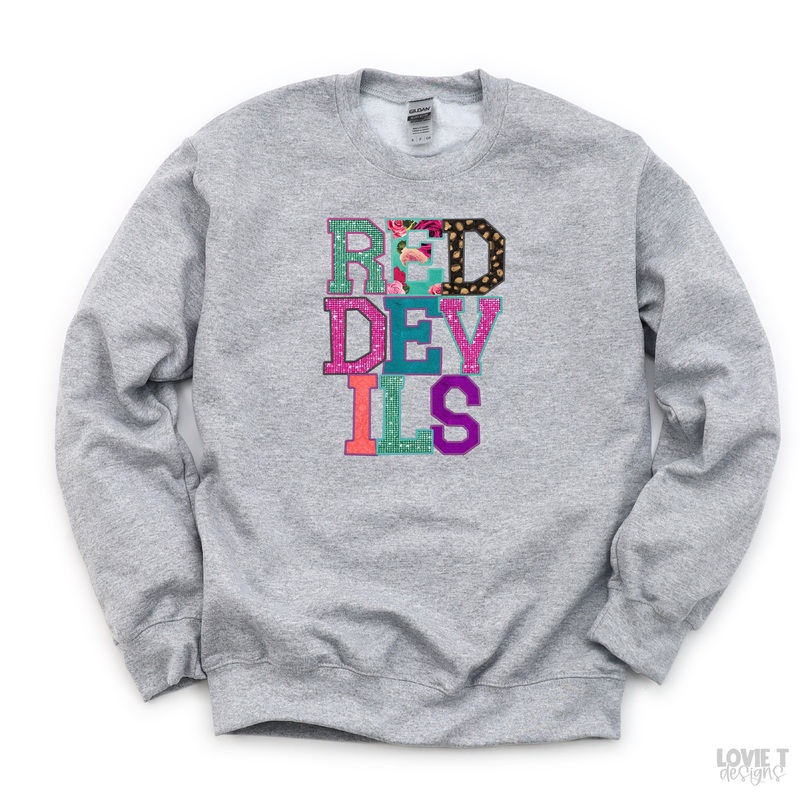 Red Devils Faux Applique|Pocket 3.5″-4″|Infant|Toddler|Youth 8.5|Adult 11″|Adult 12″