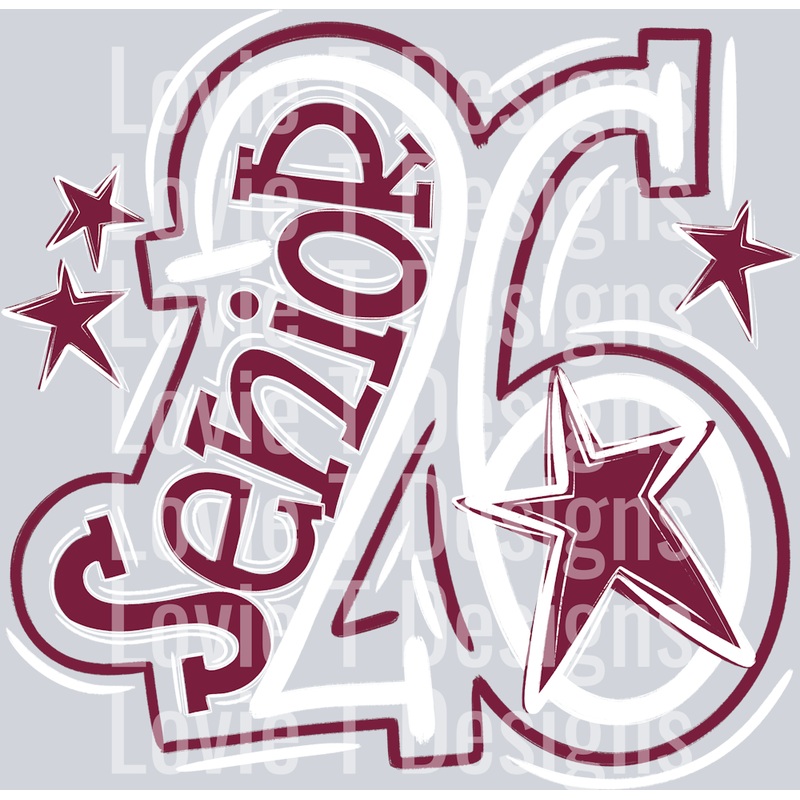 SENIOR 2026 WHITE MAROON|Pocket 4″|Infant 6″|Toddler 7″|Youth 8.5″|Adult 11″|Adult 12″