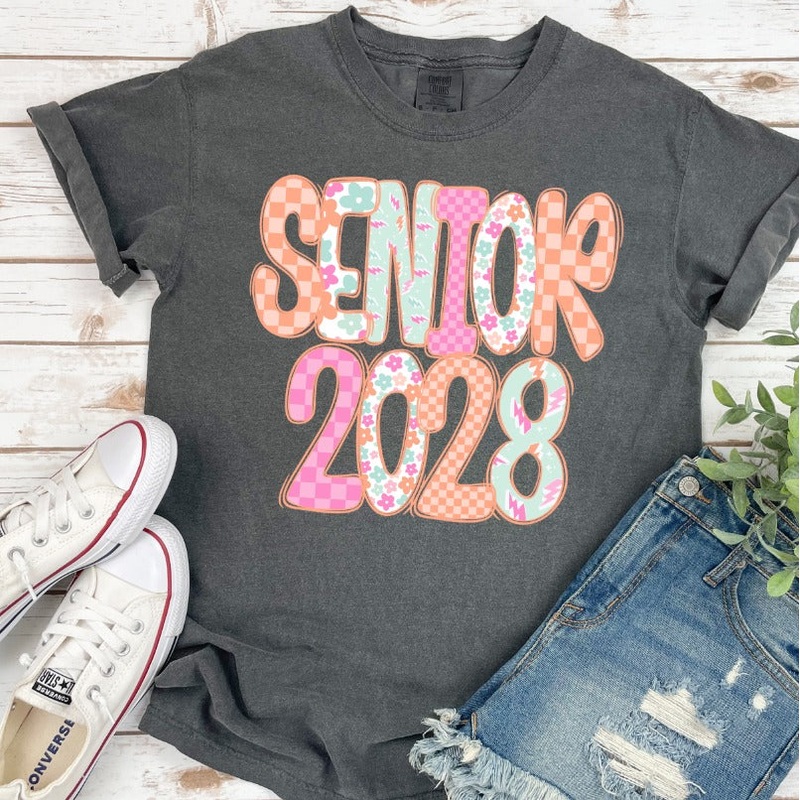 SENIOR 2028 WORD ART|Pocket 3.5″-4″|Infant|Toddler|Youth 8.5|Adult 11″|Adult 12″