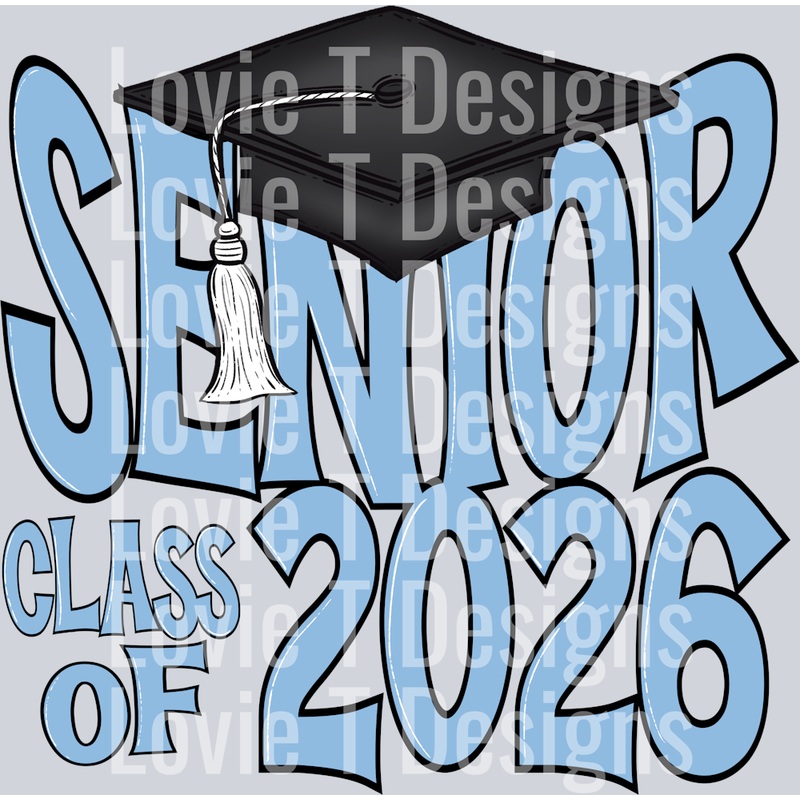 SENIOR CAP 2026 CAROLINA BLUE|Pocket 4″|Infant 6″|Toddler 7″|Youth 8.5″|Adult 11″|Adult 12″
