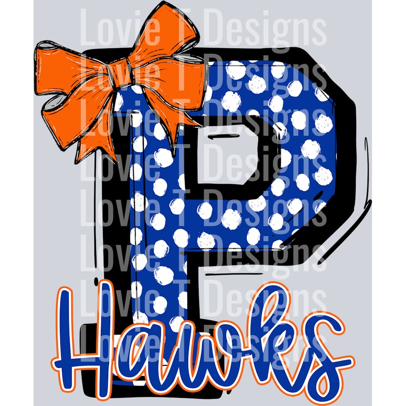 SO SPORTY BLUE POLKA DOT P WITH ORANGE BOW HAWKS
