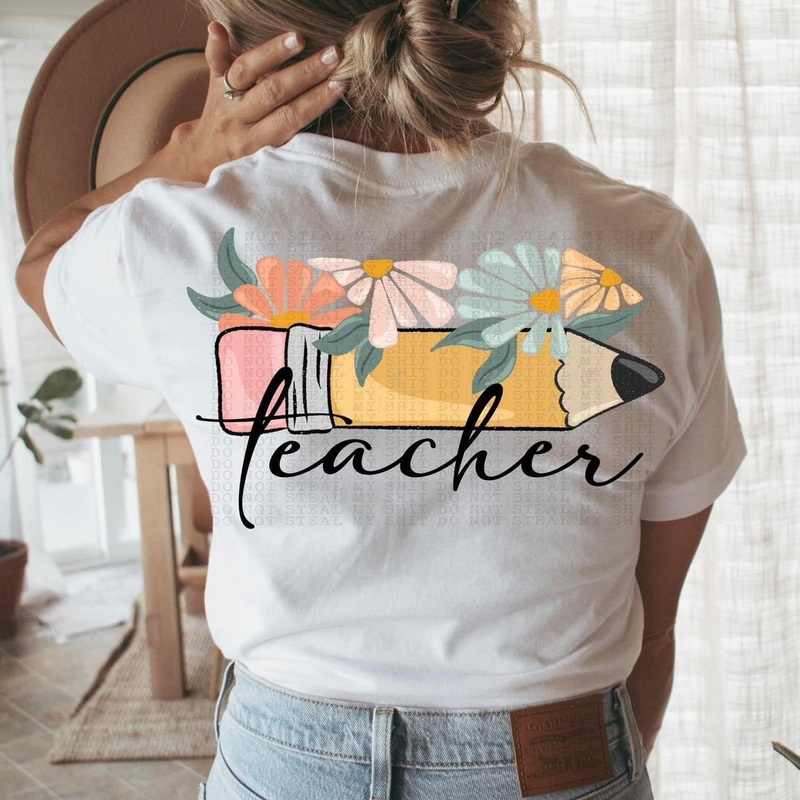TEACHER FLORALS AND PENCIL|Pocket 3.5″-4″|Infant|Toddler|Youth 8.5|Adult 11″|Adult 12″