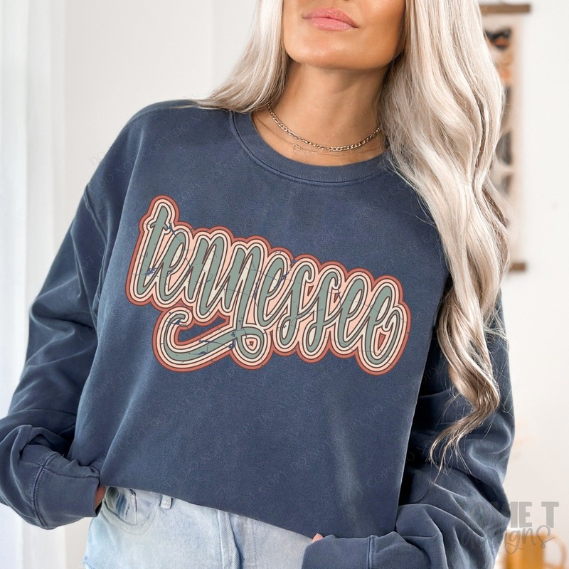 TENNESSEE SCROLL STACKED DISTRESSED IN MUTED BOHO COLORS