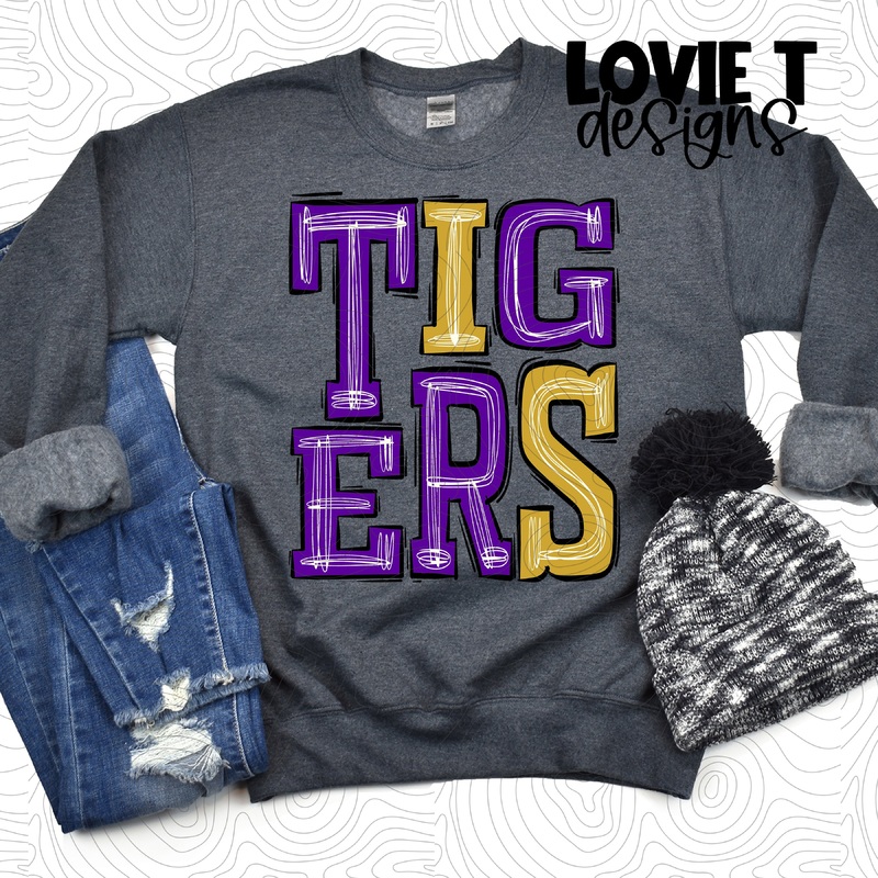 Tigers Purple And Gold|Pocket 3.5″-4″|Infant|Toddler|Youth 8.5|Adult 11″|Adult 12″