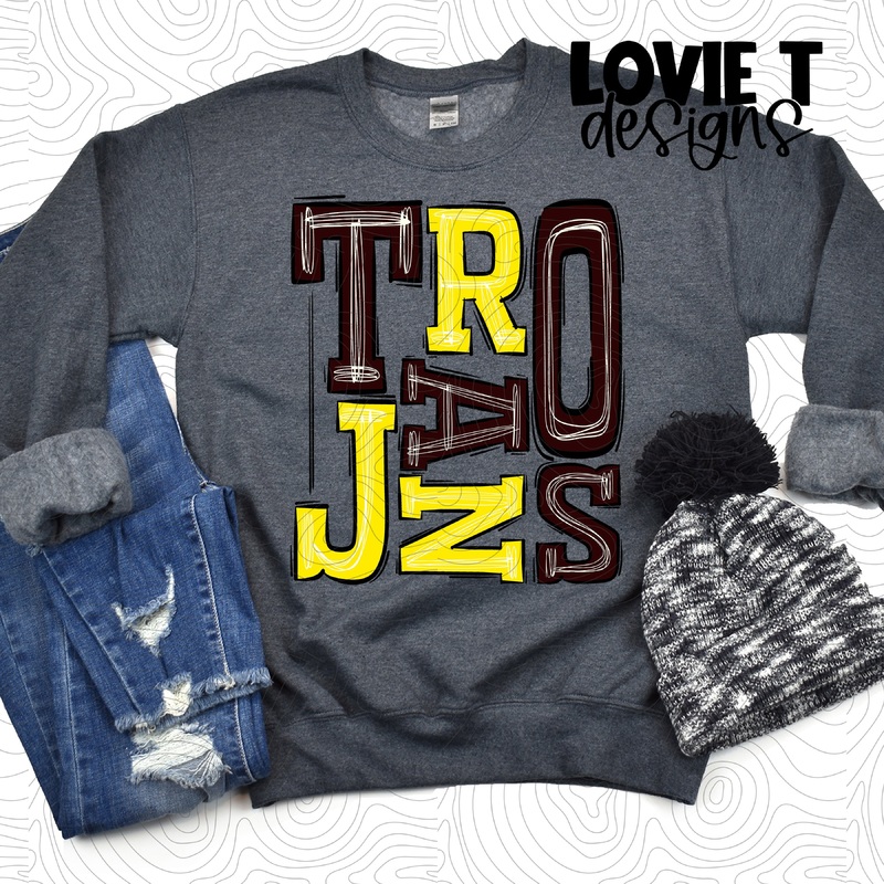 Trojans Maroon Yellow|Pocket|Infant|Toddler|Youth|Adult 11″|Adult 12″|Oversized Print 12″ Wide and Approximately 14″ Long – Also Includes Two Smaller Prints 5″ 6″ inches wide & 7″ Tall|Mockup