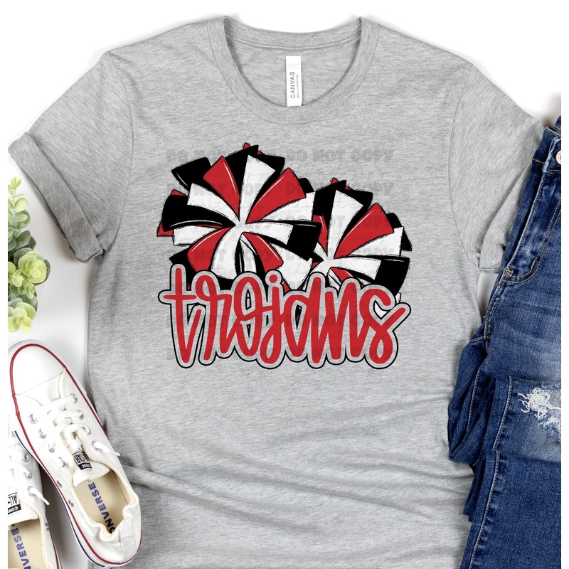TROJANS RED POMS|Pocket 3.5″-4″|Infant|Toddler|Youth 8.5|Adult 11″|Adult 12″